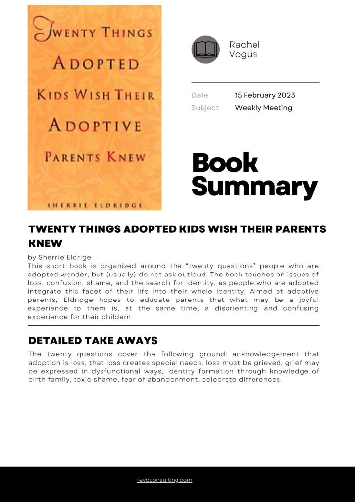 Written by Rachel VogusFebruary 16, 2024 Twenty Things Adopted Kids Wish Their Parents Knew by Sherrie Eldridge Share this: Click to share on X (Opens in new window) X Click to share on Facebook (Opens in new window) Facebook Like Loading... Related Leave a comment Cancel reply Δ