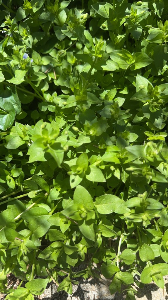 The chickweed is simple: clip it (rather than pulling up from the roots), wash it (I like to use a vinegar water soak), and bag it with a few paper towels to absorb moisture. Munch on it directly from the bag or use it as salad greens.